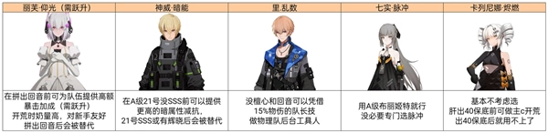 考虑到部分角色在新人队伍不全时,可以对阵容有补强作用,对选取推荐如下: