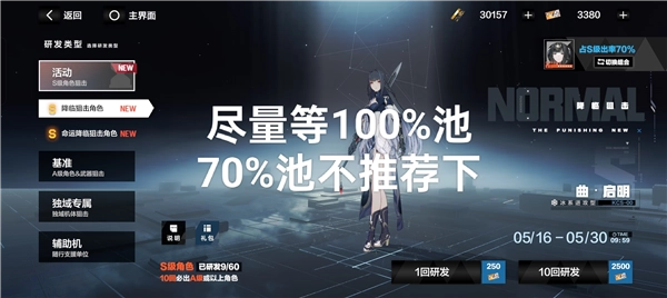 资源比较紧张,但由于战双一般新角色强度较高,且对体系的构建十分重要,所以优先跟着版本更新抽取新角色及其六星专属武器(版本新角色卡池为100%up池)