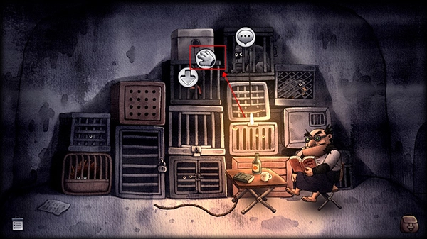 5、然后点击放大镜回到外面的视角,点击灯,使用铁管将灯敲灭,灯灭后看守人就会离开。
