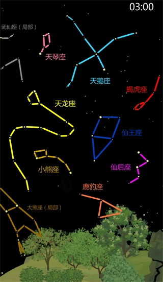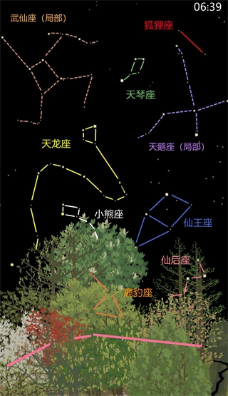可收集的星座(6个):仙王座,小熊座,牧夫座,猎犬座,北冕座,天龙座。
