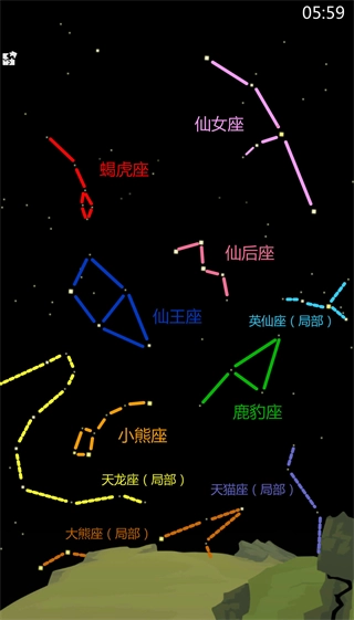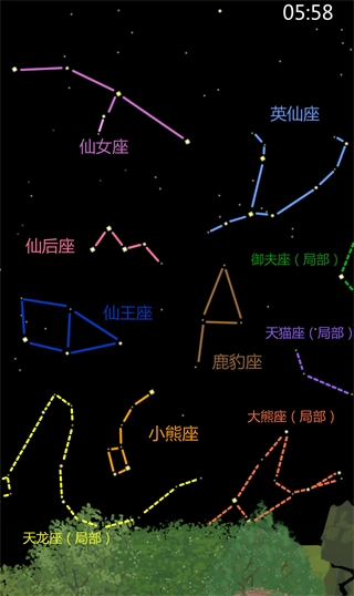 可收集(4个):仙后座,鹿豹座,小熊座,英仙座。