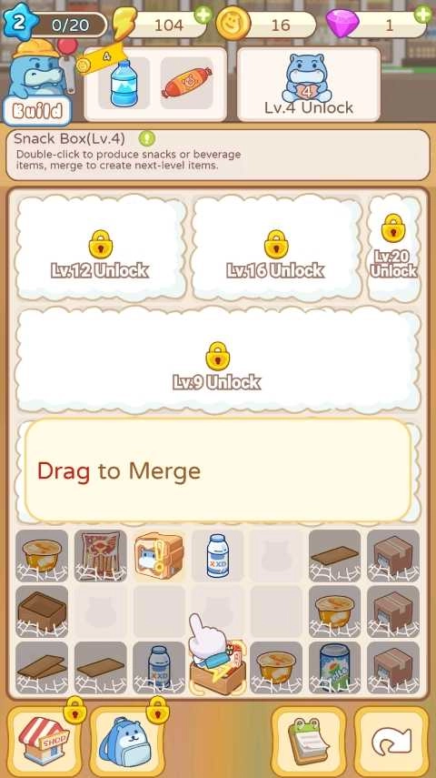 2、想要打造属于自己的超市,需要先通过合成功能,逐步搭建出完整的超市架构。