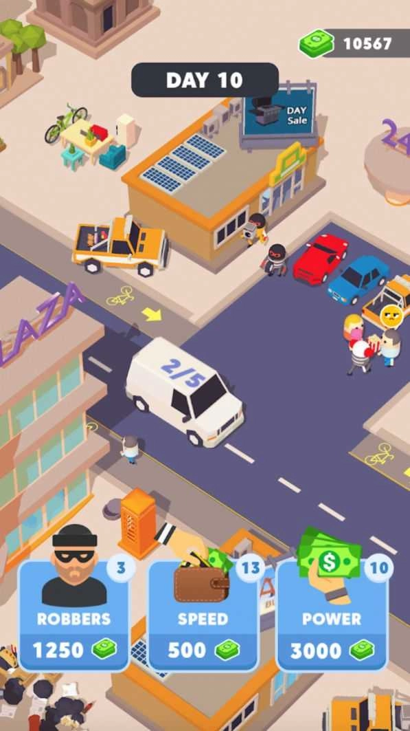 游戏根据天数,玩家移动手指收钱,展现天才小偷的实力。