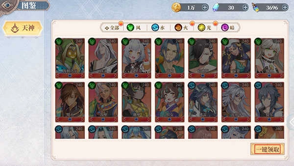 2、玩家可以通过天神图鉴查看每位天神的属性,提前了解,还可以通过收集图鉴,领取奖励。