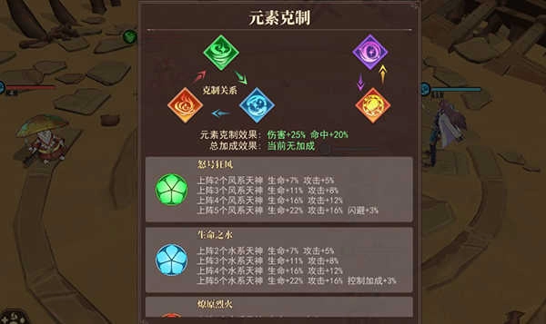 3、天神元素之间还存在克制关系和羁绊加成,玩家可以根据这一特性上阵天神。