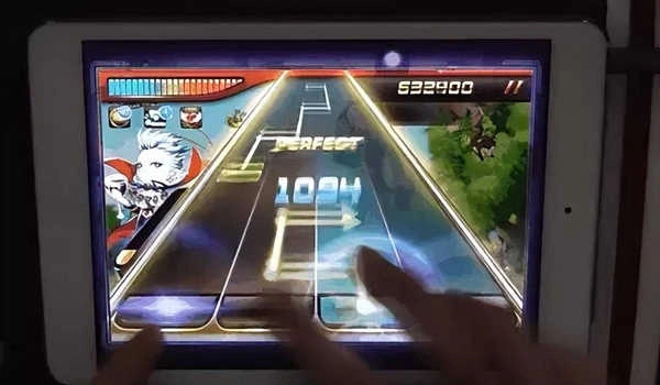 另外屏幕上会出现一些随机方向的音符,我们得按照这个方向来滑动。