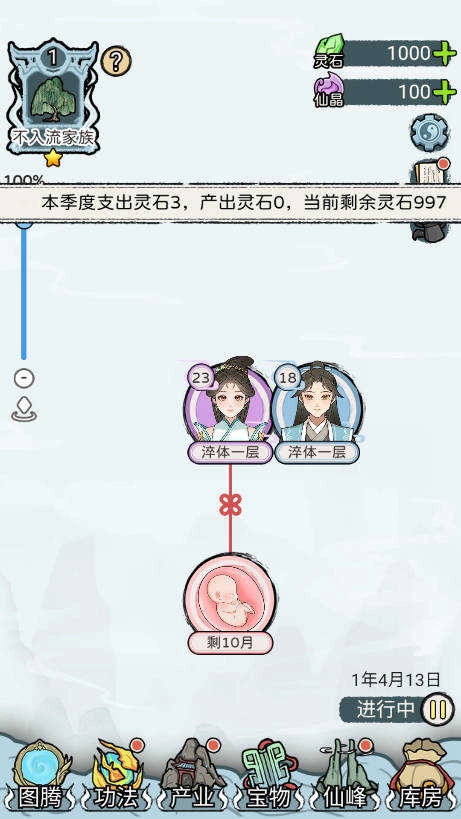 3.灵活的任务和体验体系:玩家可以派遣家人外出训练,完成各种任务,获得修炼资源和奖励。任务的选择和经验的结果不仅影响家庭成员的成长,也影响家庭的整体实力。