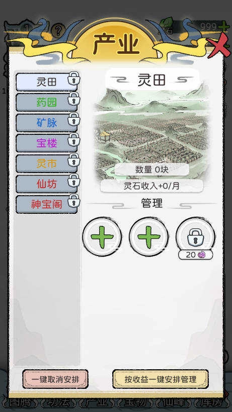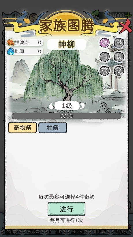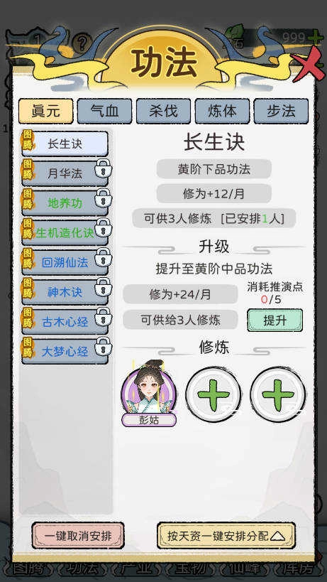 2. 新增功能"大阵",在解锁大阵后可通过对应的阵法对家族内所有成员的属性进行加成影响
