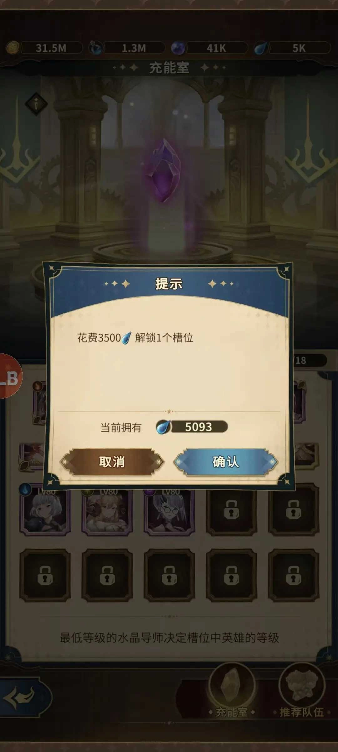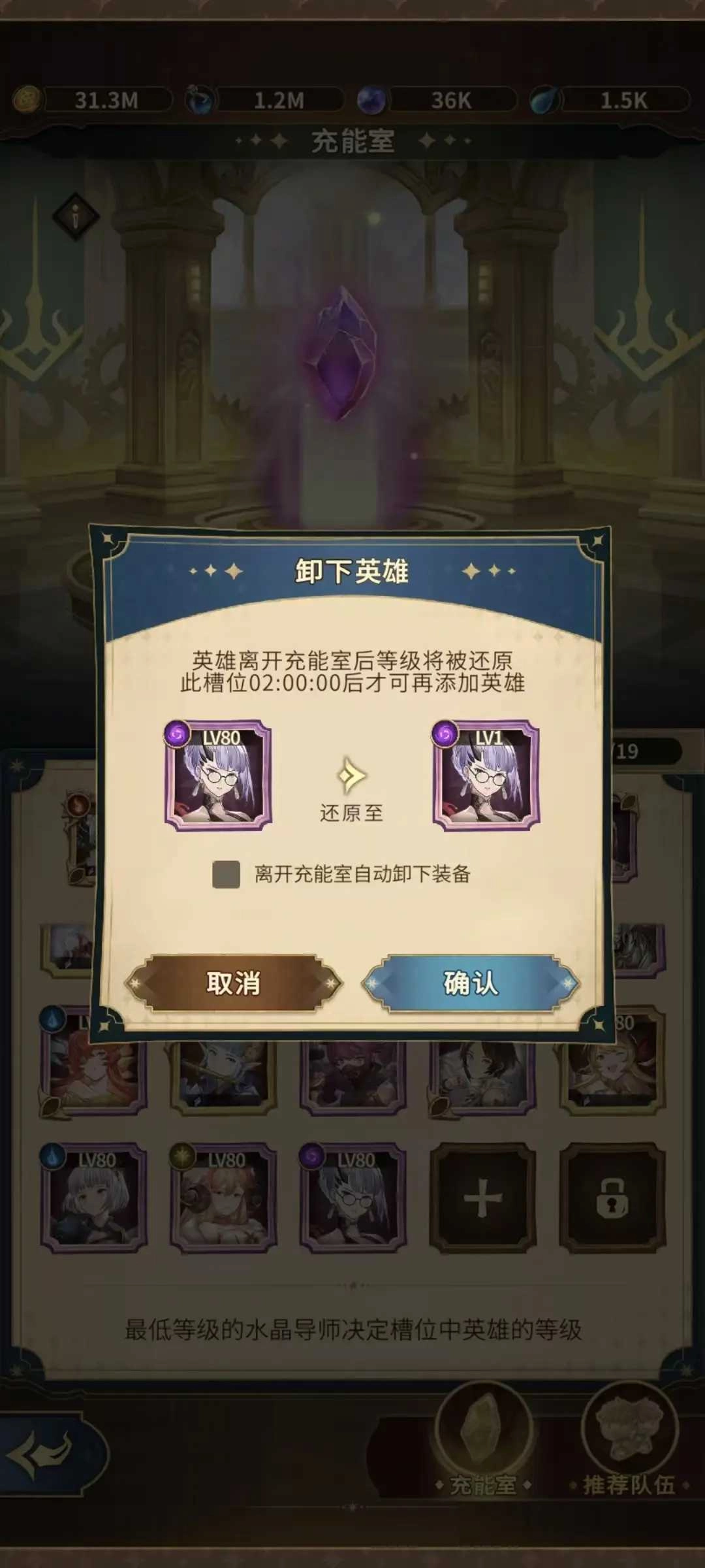 温馨提示:放入充能室与水晶等级同步的英雄,本身等级会受到自身英雄阶级限制而无法将英雄等级与水晶等级同步到最大等级哦