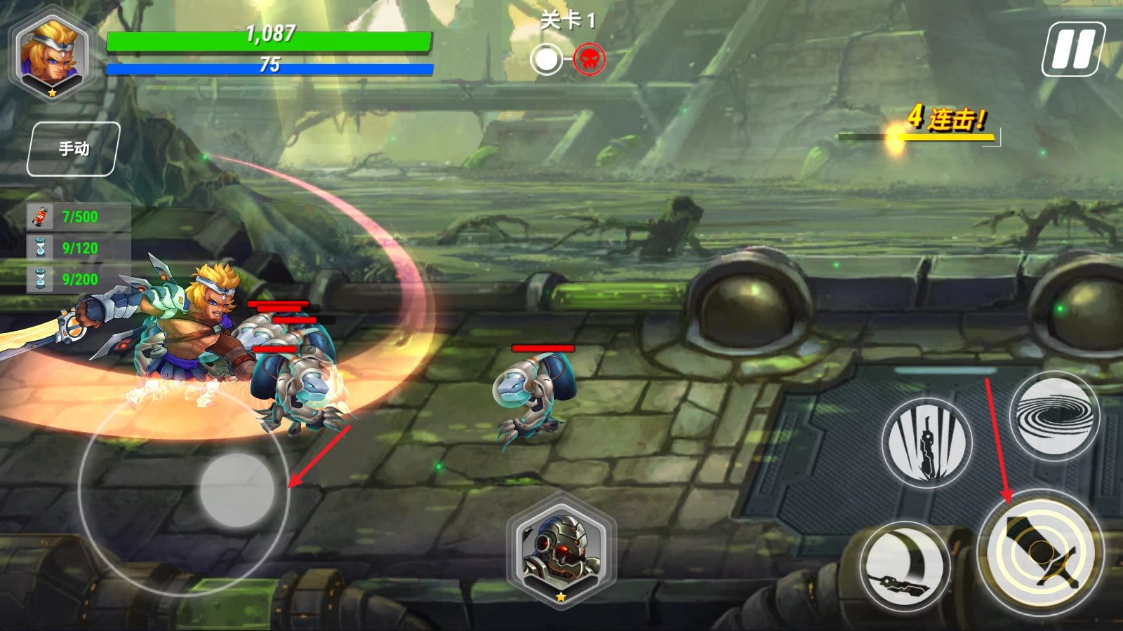 2、随后选择关卡即可开始,进入后左侧摇杆控制移动,右侧的剑则是攻击。