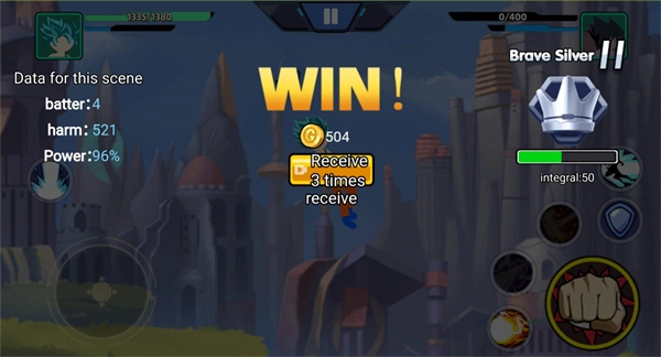 3、将对方血量清零就可以获得胜利,获胜后可以获得金币奖励。