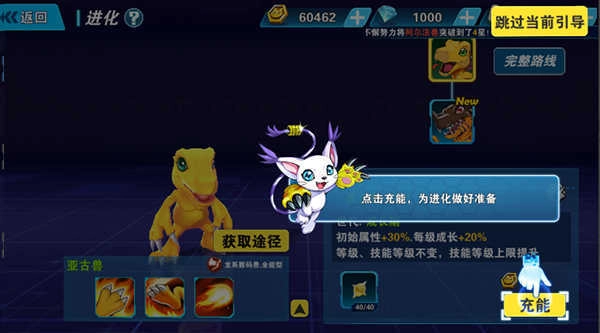 3、点击充能,为进化做好准备