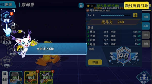 1、在宠物界面中,点击需要进行进化操作的数码兽头像
