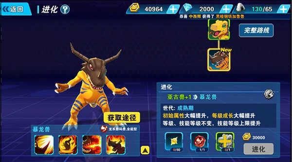 2、点击进化按钮