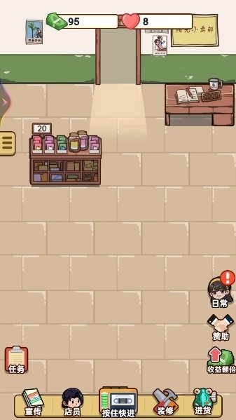1、在游戏里,玩家得靠自己用心打理小卖部,如此才能获取更多金币;
