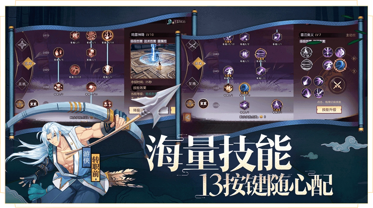 4、创新设计十三键位双层技能盘,突破连招上限,打造专属必杀技。还有多人组队模式,攻克高难度团本。齐聚胧月之下,开启你的冒险征程!