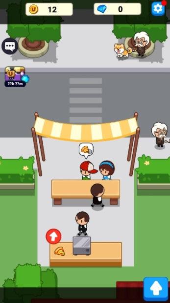 4、将美食提供给顾客后领取收益,不断地重复此行为换取更高的收益,开始装修店铺。