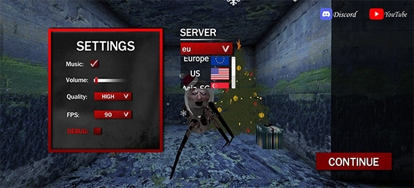 2、接下来要记得务必和朋友选择相同的服务器地区,选好后点击“continue”;要是页面一直处于加载状态,就需要开启加速器了。