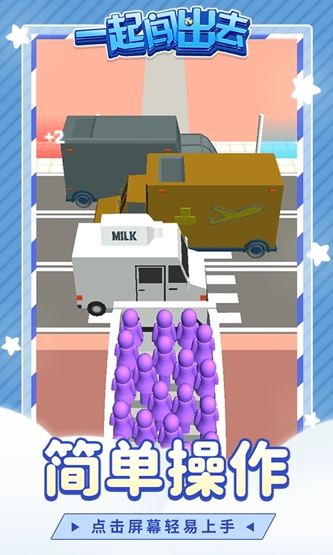 这是一款轻松休闲的小游戏,操作简单,目标是让更多小人顺利穿过马路、登上轮船,成功闯出去!