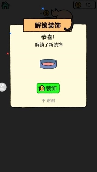 3、每通过一个章节可解锁新饰品,在衣柜中为猫咪搭配领结、小帽等装饰。
