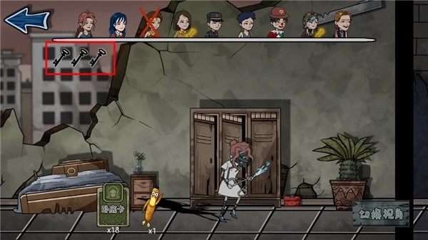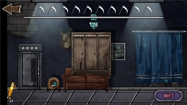 2、这个模式和以往的不一样,道具是随机出现的。进入游戏后,上方的镰刀标识代表屠夫有10次抓捕机会,换句话说,你需要成功躲避10次抓捕才能通关。