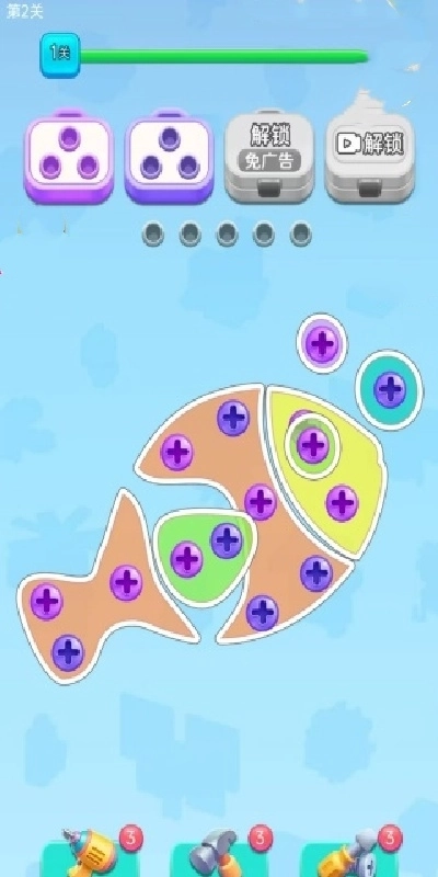 1、点击螺丝可将其拧松以释放彩色螺帽,长按该操作可连续拧动多个螺丝,从而提升操作效率。