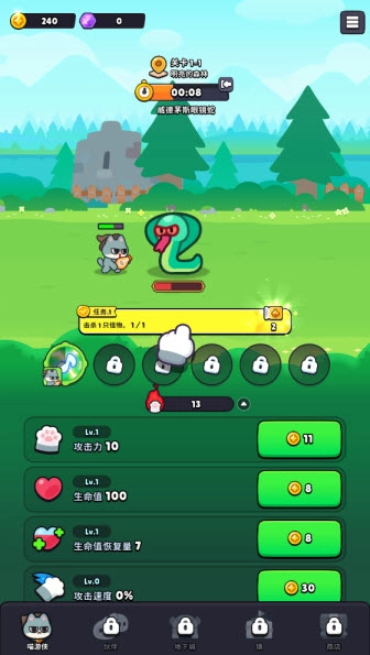 猫咪村庄是一款放置挂机类型的休闲游戏,游戏的主角是可爱的猫咪,玩家可以和能力各不相同的猫咪组成小队,开启消灭怪物的旅程。在游戏里,每一只猫咪都有着独特的立绘形象和技能属性,玩家需要合理搭配阵容,这样才能应对越来越强的敌人。这是一款特别适合摸鱼休闲时玩的游戏,不需要复杂的操作也能享受到不断升级的乐趣。