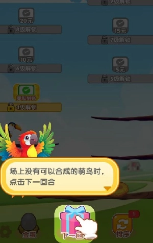 3、场上不存在合成的萌鸟时,记得点击下一回合。