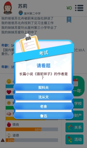 2、游戏中还会有真实的中考和高考问答,根据你的得分来决定能够上怎样的大学,一定要细心回答!