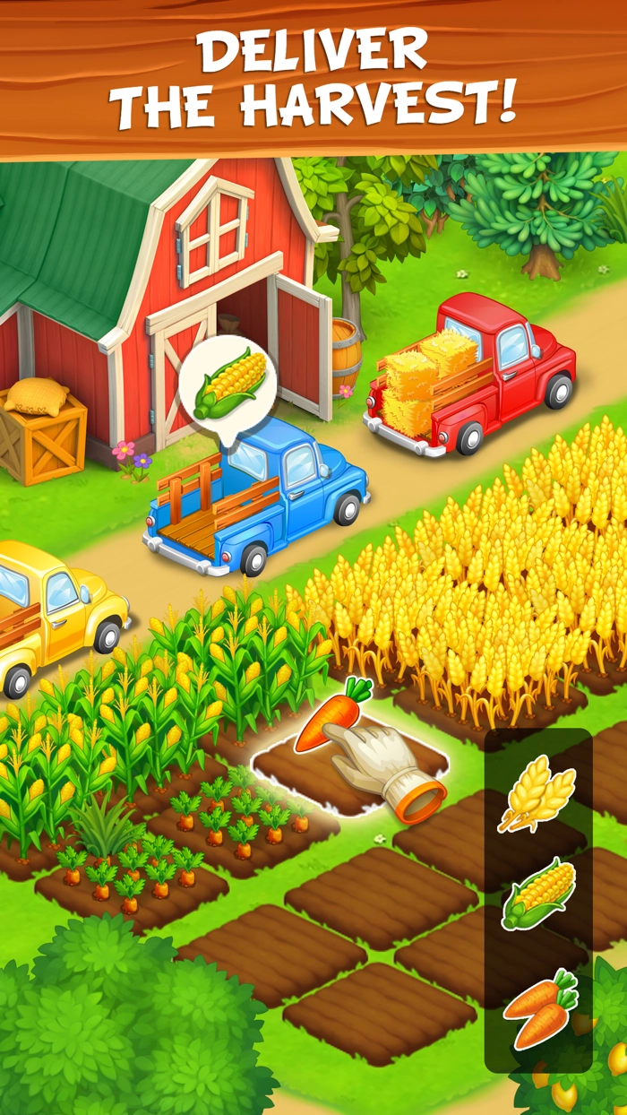感受经营的乐趣其实很简单,操作一点都不复杂,跟着提示一步步来,就能轻松获取资源;而且这里有各种各样的蔬菜和水果,你想种什么都可以。