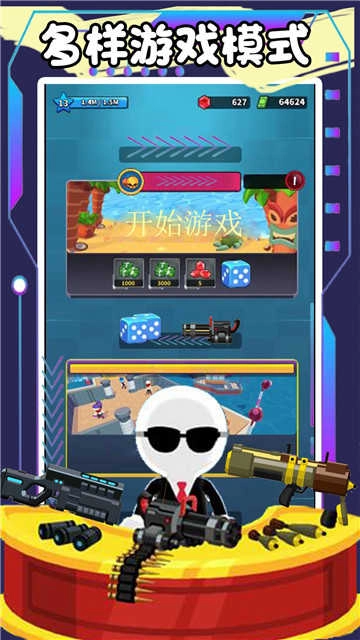 2、那么玩家也可以在挑选的过程当中有更强烈的参与感,而且这款适合不同年龄段的玩家去挑战,只要你有足够精湛的枪法就可以淘汰掉其他的竞争对手,从而让自己在游戏当中成为无敌的存在。