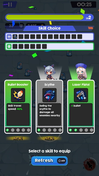 《女神天使》是一款融合了Roguelike元素的割草战斗游戏。玩家可以先挑选自己心仪的角色,凭借简单易上手的操作即可开启战斗之旅。在战斗过程中,持续消灭一波又一波的敌人,就能获取经验值等各类奖励。每当角色升级时,还能从三个随机出现的天赋里自主选择其一,通过不断提升实力,最终才有机会击败强大的Boss,顺利完成关卡挑战。