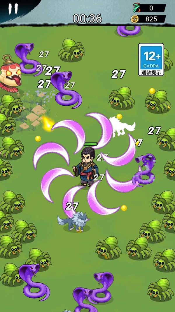 转刀割草谁最强是一款集休闲与趣味于一体的割草战斗游戏。在游戏里,玩家将化身鸠摩智闯荡江湖,既能操控转刀旋转,又能灵活移动角色。消灭袭来的怪物后,便能获取经验值与各类奖励;每次升级时,还能从三个随机技能中任选其一,唯有持续提升实力,方可冲破敌人的层层包围。