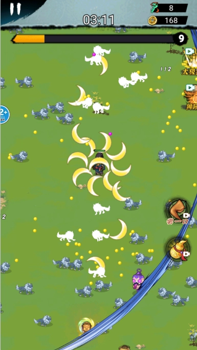 2、强化武器系统,玩家通过搜集道具可以将武器升级,让割草更加顺畅和有威力。