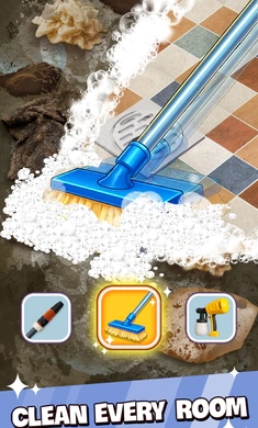 1、进入游戏后,玩家能够使用吸尘器、刷子等各类清理工具,这些工具的效果十分不错。