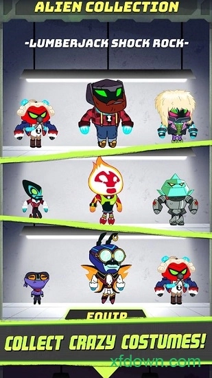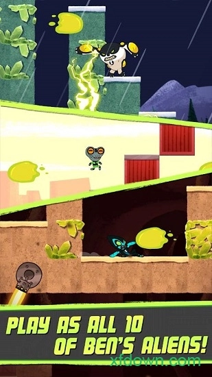 游戏提供了丰富的角色选择,你可以扮演本(Ben)的十位外星英雄,包括Fourarms、Heatblast、Diamondhead、XLR8、Cannonbolt、Shockrock、Wildvine、Greymatter、Stinkfly和Overflow等。此外,还有Omni-enhanced版本和疯狂的外星人服装版本等你解锁。随着游戏的进行,还会有更多新角色加入,让你的冒险之旅更加丰富多彩。