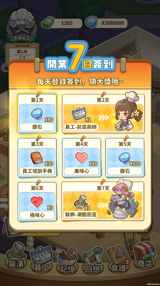 3、签到:游戏内每日签到都是有奖励的,期间会就一些员工手册的奖励哦!