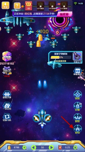 1、在游戏里点击飞机就能启动射击功能,此外也可以开启右下角的自动射击模式。