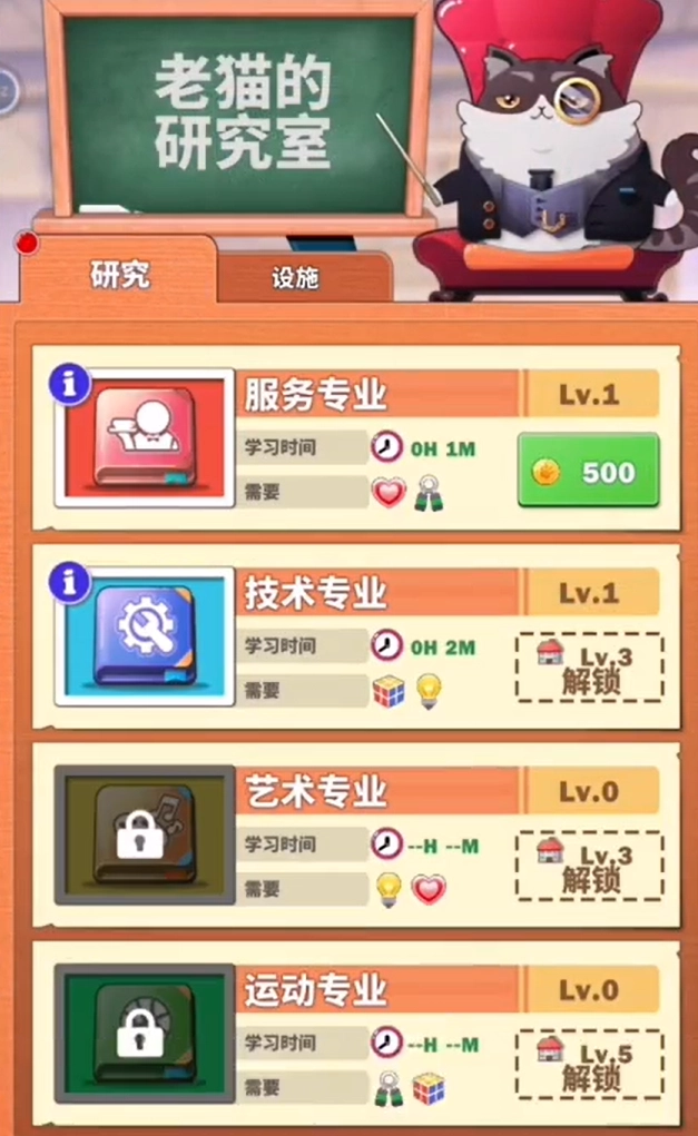 1、使用金币提升你的专业等级,如此便能解锁更多职业课程。