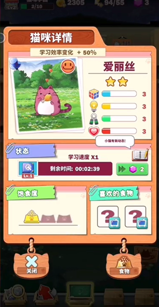 2、为你的猫猫学生喂食,提高他的学校效率。