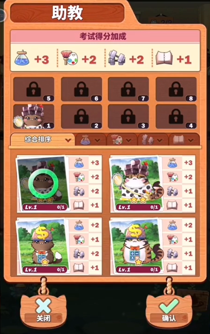 4、等级提升后开启助教功能,还能请回之前已经毕业的优秀学生,它们可以加速学习效率已经产生金币。