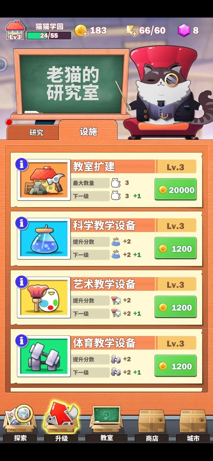 3、各式各样的可爱猫咪,你可以为它们开设许多课程。