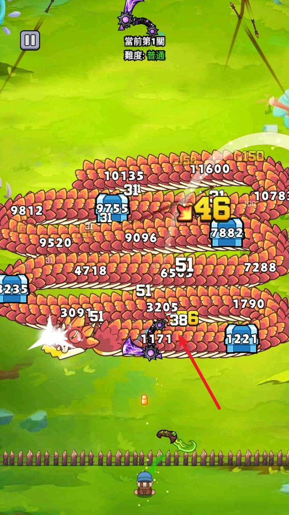 4、宝箱之外的身体部分也会有数字,归零之后这一截身体就会消失。