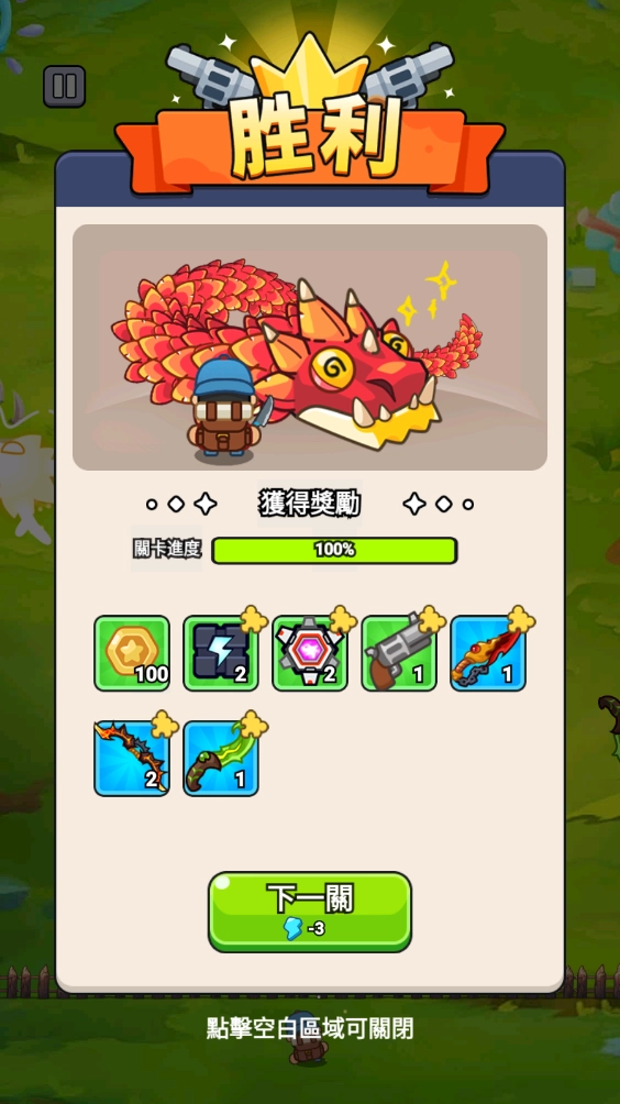 7、当击败了全部巨龙后,我们就能够顺利过关获得奖励了。