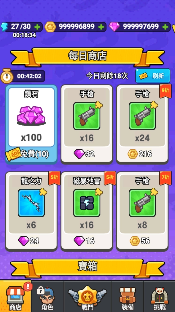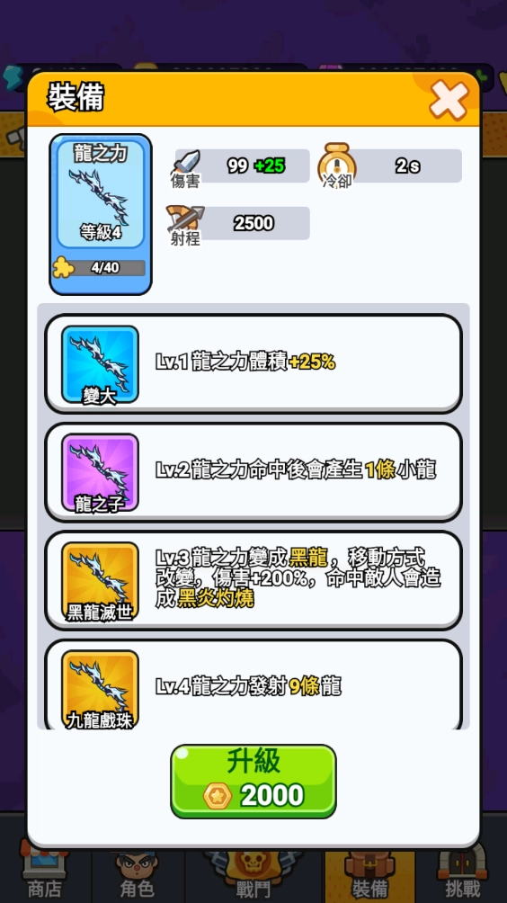 3、通过闯关、开启宝箱等方式就能够获得武器碎片,不断的去升级解锁全新的武器,提高你的战斗力。