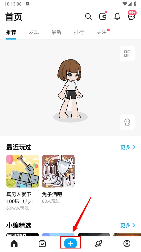 2、数字作品、装扮、表情这三类都可以点击加号进行创作,如下图。