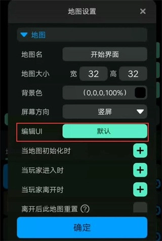 1、启动软件后,点击界面上的"+"按钮进入创建游戏流程,随后进入编辑器界面,新建一张地图,地图的颜色可根据需求自行设置。