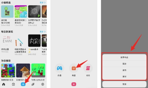 1、点击创游首页下方加号,选择发布商品即可。
