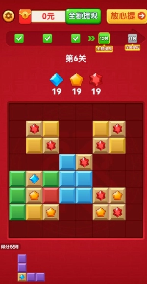 洪福方块是一款消除方块就能持续领红包的休闲小游戏。玩家只需简单滑动方块,让一行或一列的方块凑满即可直接消除,进而领取红包。当红包累计到一定数额就能提现,且到账速度非常快。