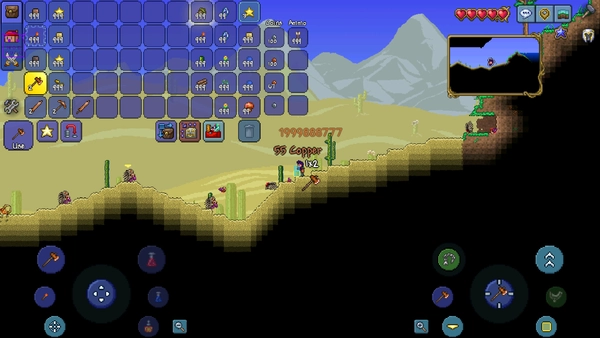 1、新手进入到游戏中,我们只拥有三个工具,斧子、镐子和剑,在地面上白天我们会遇到史莱姆等敌人,晚上会有僵尸、恶魔之眼等敌人。